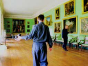 After Body Press is a multi screen video work that runs in a maze-like configuration through the ground floor galleries of Robert Adams Eighteenth Century house, Osterley Park. Filmed in the renowned and incredibly grand Neo-Classical rooms of Osterley Park itself, After Body Press creates an endlessly moving environment of synchronised swirling, doubled images that fold into each other along six specially arranged projection screens.