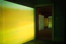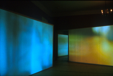 Like the other recent video installations created by Graham Ellard and Stephen Johnstone, such as Geneva Express (Photographers Gallery, 1998) and Wall of Death (Cornerhouse, Manchester, 1999), this latest piece draws on and emphasises the architectural qualities of the projected video image to create an immersive and dynamic space that the spectator experiences as a kind of performer. Integral to these installations is the recognition that the viewer must act or perform simple, sometimes unconscious or involuntary acts in the space in order to experience the work; swivelling through 180 degrees in Geneva Express to watch a plane pass overhead, spinning back and forth to unravel the logic of a doubled, unending car chase circling the viewer in Wall of Death.