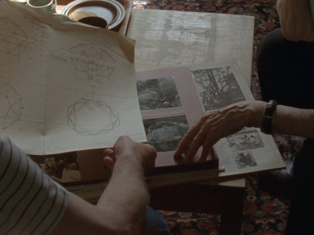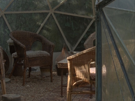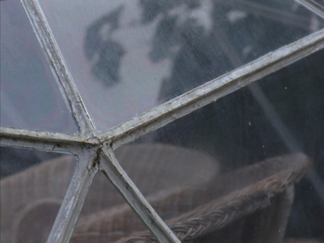 The film interweaves images of the ageing dome in late autumn weather with sequences shot in early summer the following year, this time along with the owner, sitting in a perfectly unchanged 1970s interior as she talks about why and how the dome was made, with the help of her copy of ‘The Dome Cook Book’.