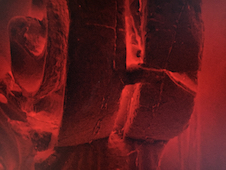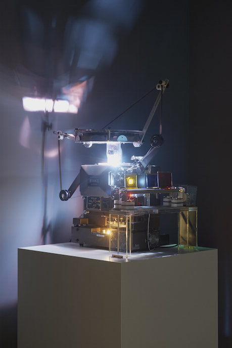Although the entire film was shot in black and white, the action is interrupted by intensely coloured sequences in which optically printed negative film is vividly tinted by colour gels that move back and forth in front of the projector on a handmade motorized mechanism. In these sequences of intense, close-up images the casts are reimagined as the subject of one of Jean Painlevé’s eerie underwater films of crustaceans, molluscs and seahorses, or as the encrusted shipwrecks in Jacques Cousteau’s early film, Silent World. Or even, as ancient life forms, now fossilised, that have in some way been slowly secreted from the walls of the RA Schools Studios.