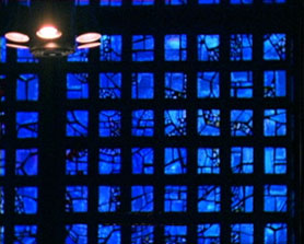 At the same time the film proposes two simultaneous formal analogies between modernist sacred architecture and cinema; i.e stained glass as filmstrip and the modernist cathedral as a projector of light.