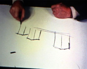 The project is the second in a planned trilogy of 16mm films that develop non-narrative accounts of the possible relationships between film and certain forms of utopian/visionary post war architecture begun with 'Proposal for an unmade film (set in the future) (2007, 21 minutes).