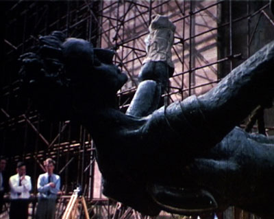 Dudley Shaw Ashton’s 1958 film Coventry Cathedral was produced by the BFI Experimental Film Fund and the British Council, describes the processes of designing the building and the works of art commissioned for it’s interior. Notably the film features none of the on site building process the corner stone was only laid in 1956 but instead uses numerous shots of a large model of the Cathedral. At times the camera tracks through and around the model, which is not presented as such, and is in fact reasonably convincing as a simulation of the real building.