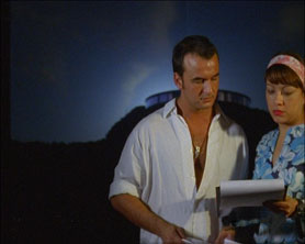 Overall the film implies (but never states) that the material shot on Lanzarote and in the studio (the headshots/tests etc.) was the by-product of a pre-production process for an eventually abandoned film. Subtle references allude to the possibility that this was to be an (albeit low budget) science fiction film that seems to be a copying, or remaking, or pirating, of the main narrative conceit of Nicolas Roegs The Man Who Fell to Earth (a film about a visitor from another world driven to attempt an idealistic rescue mission) which then be extension, in some way casts Manrique as the title character.