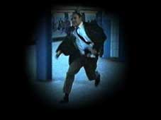 Using digital image manipulation software these sequences have been treated to remove from the footage extraneous details to leave just the isolated image of the cars, bikes and figures involved in the chase, the images being projected without any indication of the frame edge. The footage has been adjusted to reduced the resolution of the extracted image and increase its luminance. The whole of each sequence has then been slowed down as will the accompanying sound. This soundtrack is split between the two opposing projections and panned around the space in sync with the images, creating a vivid and dramatic spectacle as the logic of the chase is traded across and around the installation.