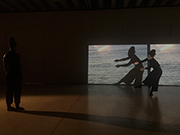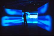 Video sequences drawn from seminal car chase movies glide across a cycloramic screen surrounding the viewer bound together in an endless and futile pursuit of oneanother. A Film and Video Umbrella commission, with Cornerhouse, Manchester.